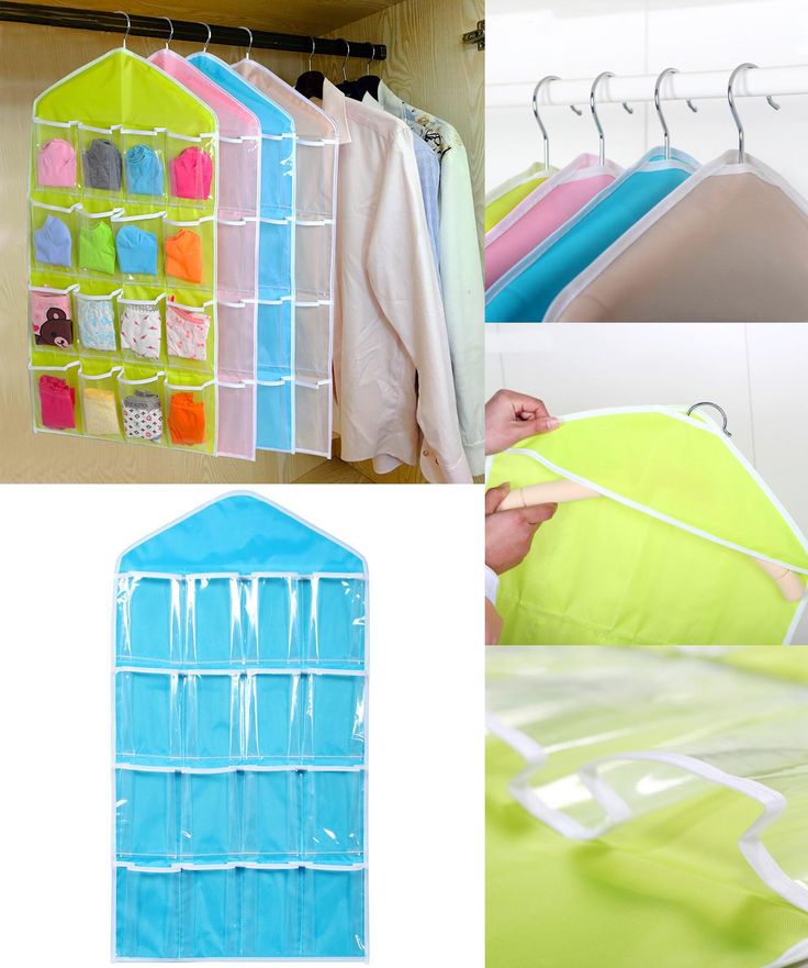 This 16 Pocket Organizer helps you hang your items neatly. This hanging bag is designed to be compact and convenient to help you to store and preserve small items from dirt, dust, damp and bacteria in a scientific way. You can be hanging it in the wardrobe or hang it on the back of any door. Moreover! Transparent window design, convenient for storage and looking for anything easily, you can put underwear, socks, slippers, necklaces, cosmetics, hairpins, watches, bracelets, and other daily sundries. Perfect for home, bedroom, living room, bathroom, study, kitchen, office, and so on. So! It is your good helper sorting clothes, keep your bedroom tidy and clean, also make your life more easily